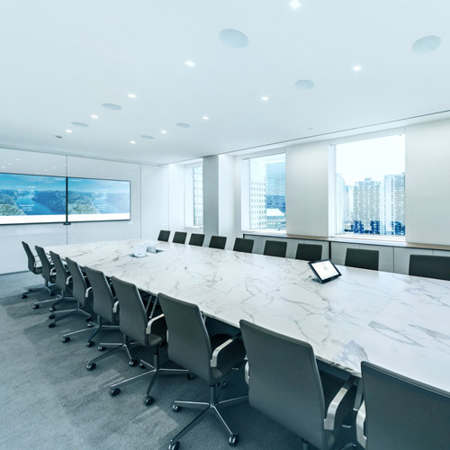 Poniamo particolare attenzione alla parte audio, elemento fondamentale di ogni riunione: le nostre soluzioni si integrano in qualsiasi ambiente, con un focus sulla gestione ottimale del meeting e sull’aspetto estetico della sala.