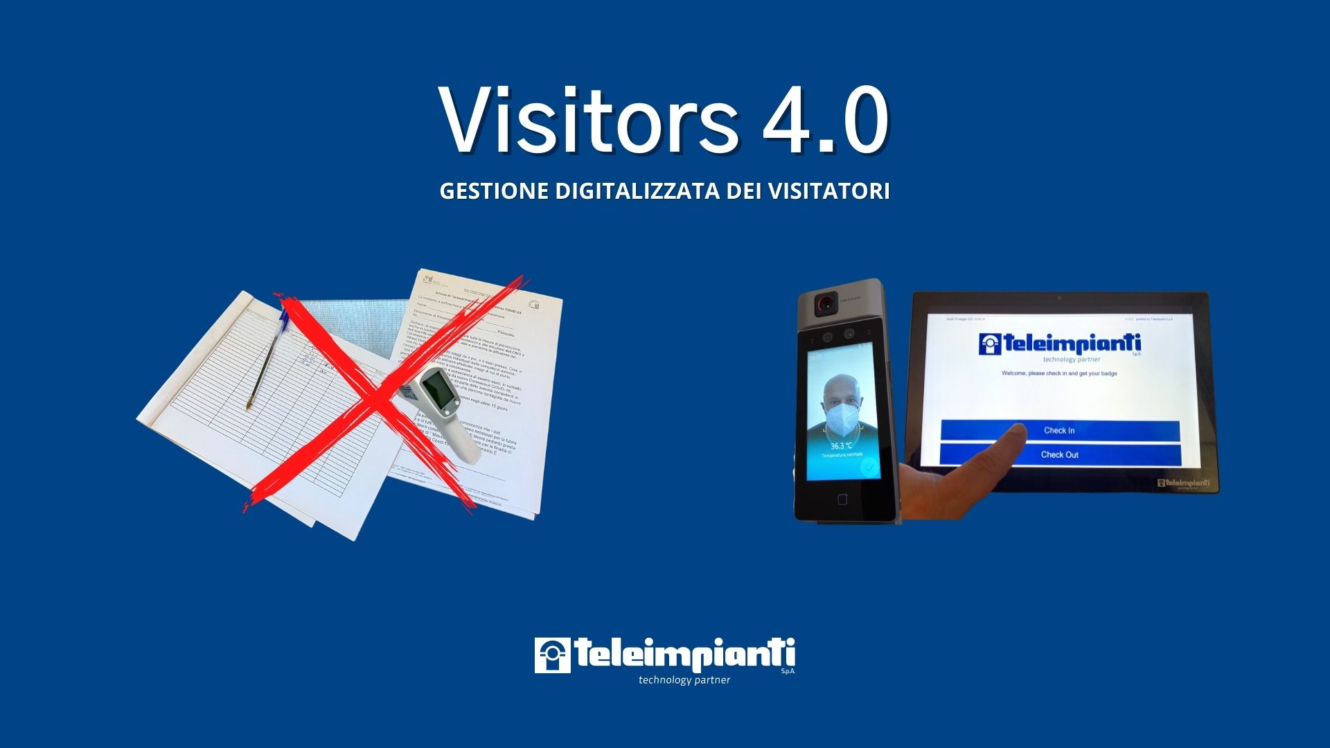 Visitors 4.0 è la soluzione di Teleimpianti per la sicurezza, la privacy e l’automazione delle procedure di accesso di visitatori e dipendenti.